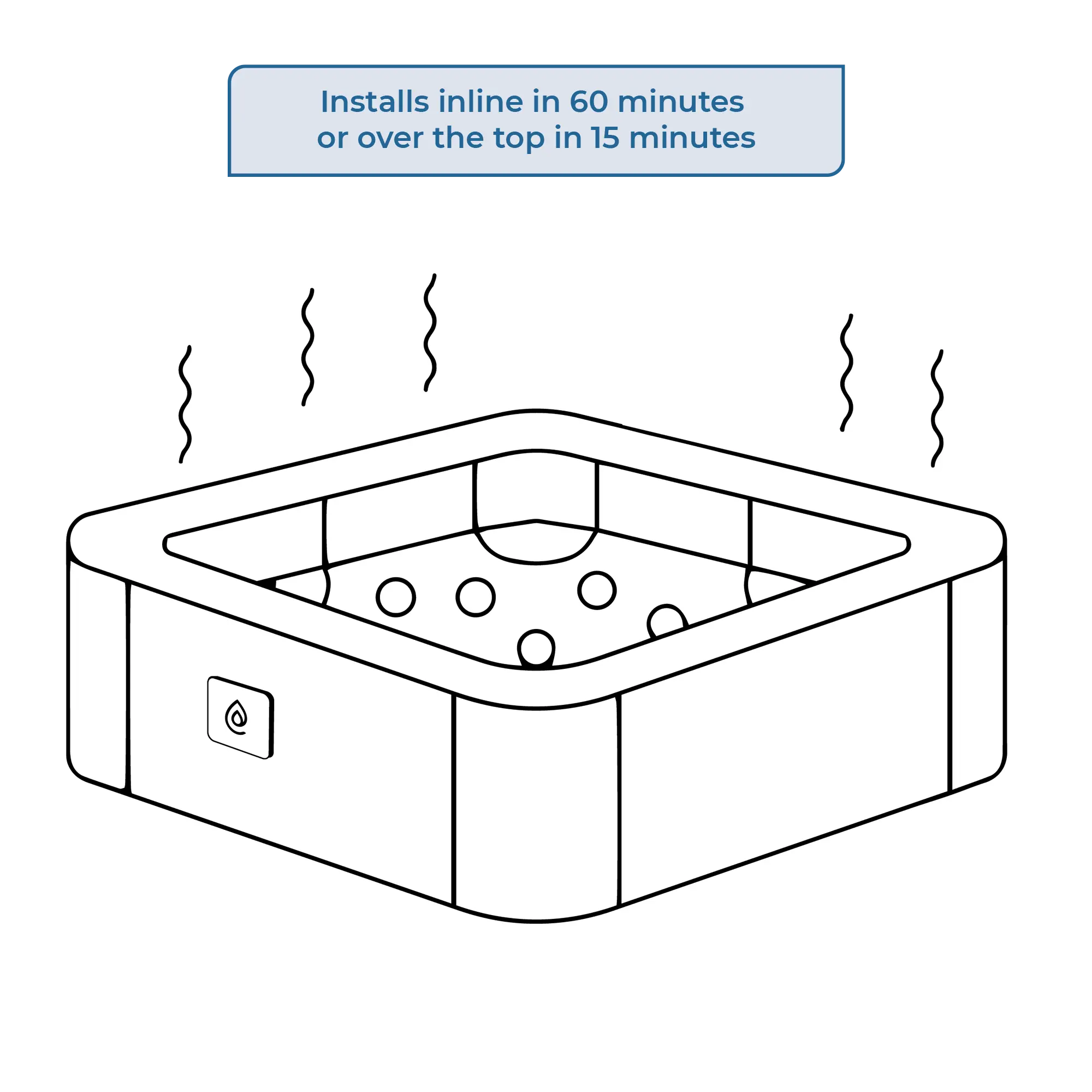 - EASY: Installs in 60 minutes in-line on hot tubs or 10 minutes over-the-top.